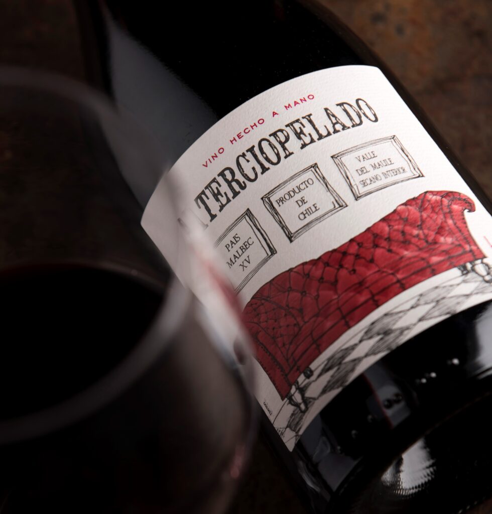 However, the most memorable wine, and of greater outreach, was Terciopelo (velvet) a brand that was registered at INAPI (National Institute of Industrial Property). It was created with the idea of making a wine using grapes of the País variety, but better than what was being produced at the time. Or at least different, softer, and rounder. More modern? In short, a País from Maule’s Secano Interior with 25% to 30% Malbec. The sweet tannins, red fruit, and notes of violet of the latter would help to bring the noble and rustic País closer.