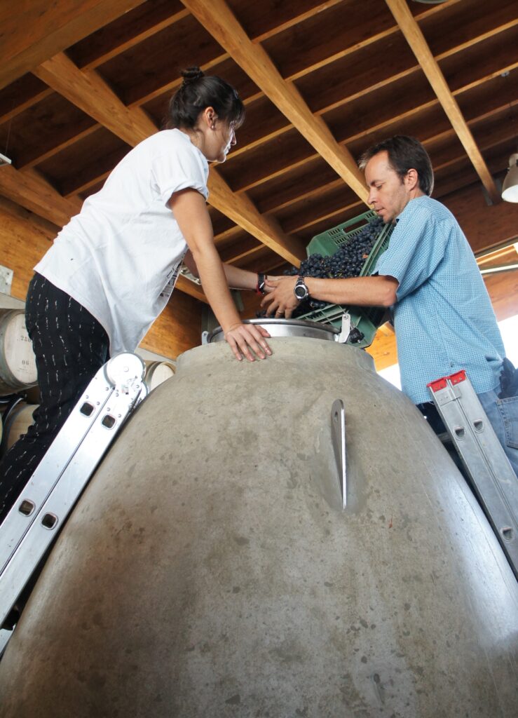 Con syrah por su parte, hemos fermentado estanques con un 50% y un 100% de escobajo con el propósito de usar ese componente en la mezcla final. La idea es dosificar esa textura de taninos distintos y ese delicioso perfume que entrega cuando logramos ajustar de manera perfecta pisoneo, temperatura y madurez.