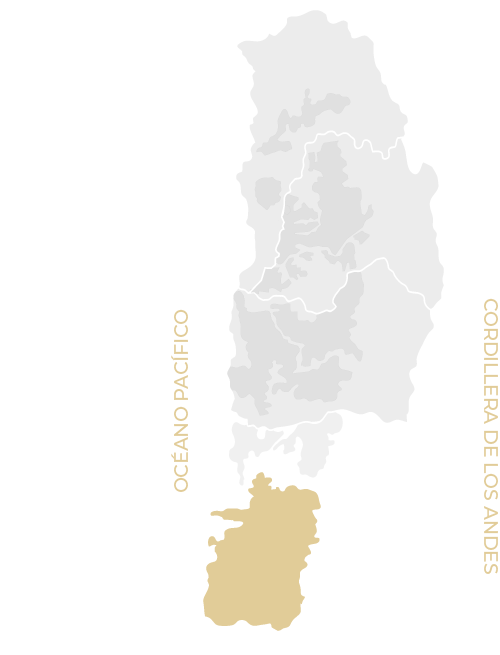Los suelos arcillosos y el clima templado-frío del valle le entregan al Chardonnay volumen y textura, con notas cítricas, fruta blanca y un fondo mineral que refleja su origen costero.